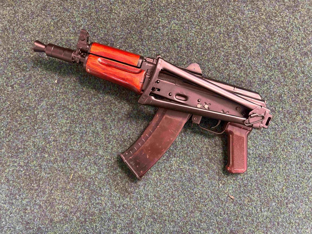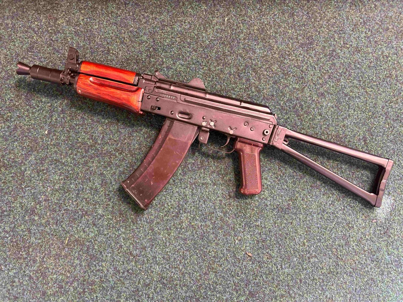 | AKSU Krinkov v samočinné verzi kategorie R1, ráže 5,45x39, výrobce Tula. Ke zbrani je jeden zásobník. Zbraň je nestřílená. V případě zájmu možno zajistit předělání na zbraň kategorie R2. | |