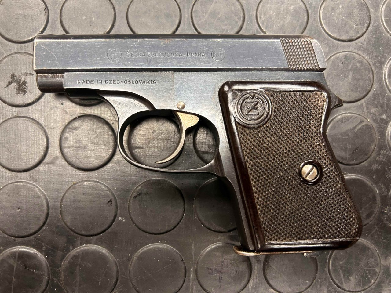 | Pistole samonabíjecí výrobce Česká zbrojovka Praha model 92 v ráži 6,35 mm Browning. Rok výroby 1952. Ke zbrani je jeden zásobník. Zbraň kategorie R3. Komisní prodej, platba možná pouze v hotovosti. | |