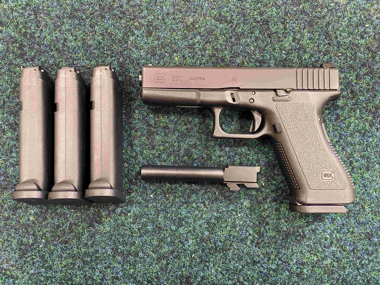 | Pistole Glock 22C, ráže 40 SW, gen. 2, sportovní záchyt závěru, 4 x zásobník s botkami pearce grip, náhradní hlaveň bez kompenzačních otvorů, náhradní záchyt závěru a standartní vypouštění zásobníku. Nastavitelné hledí. Zbraň ve výborném stavu s nástřelem do 100 ran. Zbraň kategorie R3. | |