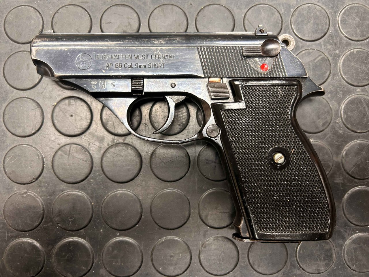 | Pistole samonabíjecí výrobce Hege Waffen West Germany model AP66 v ráži 9 mm Browning. Ke zbrani je jeden zásobník. Zbraň kategorie R3. Komisní prodej, platba možná pouze v hotovosti. | |