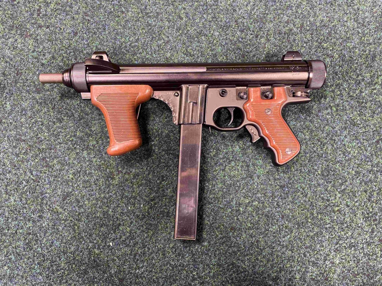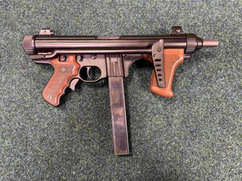 Samonabíjecí puška Beretta model M12 v ráži 9mm Luger se sklopnou pažbou. Ke zbrani je jeden zásobník. Zbraň kategorie A-I. | |