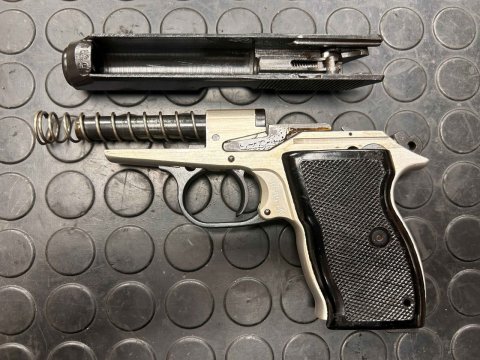 | Pistole samonabíjecí výrobce Röhm model Md. 74 v ráži 7,65 mm Browning. Ke zbrani je jeden zásobník. Zbraň kategorie R3. komisní prodej, platba možná pouze v hotovosti. | |