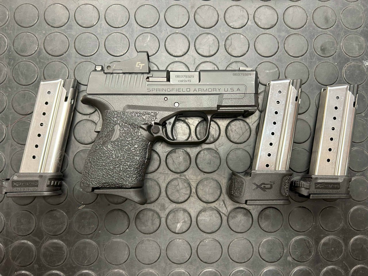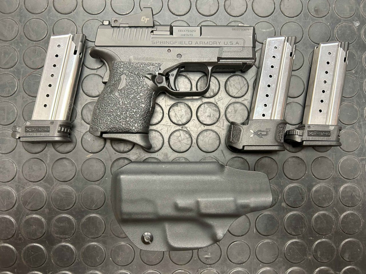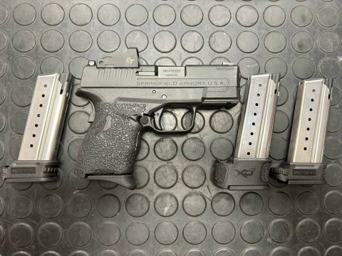 | Pistole samonabíjecí výrobce Springfield Armory XDS-9 3.3" Mod 2 v ráži 9 mm Luger. Ke zbrani jsou celkem čtyři zásobníky a IWB kydexové pouzdro. Zbraň je vybavena kolimátorem CT. Zbraň má nástřel 200 ran. Zbraň kategorie R3. | |