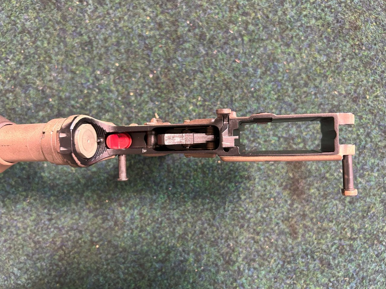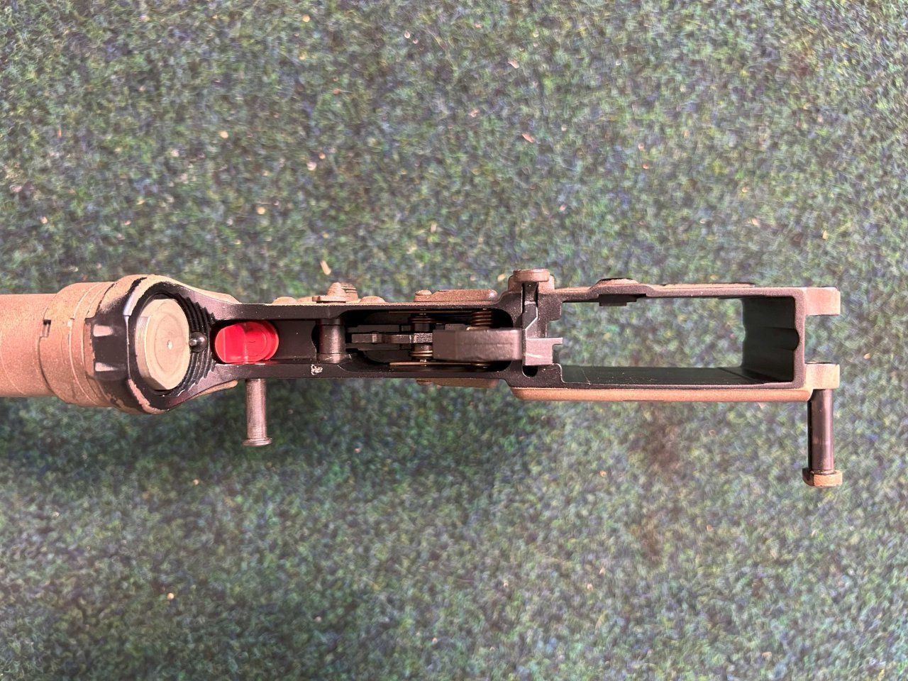 | Puška samonabíjecí Stag Arms STAG 15, délka hlavně 16 ´´, ráže 223 REM. Nástřel 1500 ran. Zbraň je osazená puškohledem Vortex Strike Eagle 1-6x24 AR BDC,2. fokální rovina. Na zbrani jsou záložní sklopná mířidla (přední i zadní) UTG PRO. Pažba typu B5, pistolová rukojeť BCM, úsťové zařízení ASE UTRA BoreLock Hiper , natahovací páka BEST PATRON Custom, anti aretační čepy. Puška má komplet kamuflážní nástřik barvou Krylon(písková/hnědá) | |